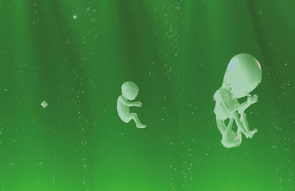 Irons-nous jusqu’à la disparition de l’homme au profit d’un monde peuplé de robots ? France Cadet nous propose une installation organique, transformant la vitrine en matrice artificielle nourricière dans laquelle des bébés robots sont en gestation, nous laissant entrevoir un avenir où l’ectogénèse serait possible, où la machine pourrait se reproduire seule et s’affranchir de l’humain, un monde où l’homme aurait disparu comme le présupposaient les chiens de Clifford D. Simak en 1952 dans son recueil« Demain les chiens »