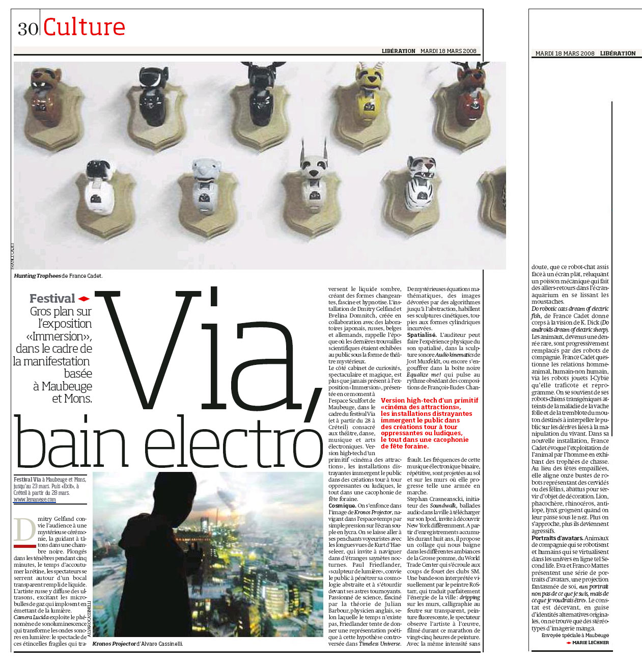 Article en ligne sur le site de Libération: Rubrique Ecrans